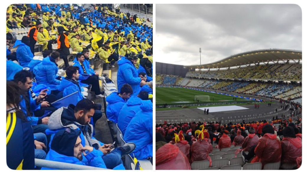 Bir taraf berbat hava koşullarında tribüne gelen taraftarına dağıttığı yağmurluklarla İstanbul işi Boca Juniors görüntüsü yaratmaya çalışmışken, diğer tarafta keşmekeş hakimdi. Galatasaray da taraftarına kötü hava koşullarından daha az etkilenmeleri için bir şeyler vermiş bulundu, keşke vermeselerdi! İnanınız bu kadar kalitesiz, çirkin ve hatta pespaye plastikler dağıtmaktansa yağmurlukları maç biletiyle birlikte indirimli satsalar daha iyi olurdu. Öyle şey olur mu demeyiniz, hafızanızı yoklayınız. https://www.galatasaray.org/haber/gs-magazacilik/galatasaray-storeda-yagmurluga-derbiye-ozel-fiyat/24358